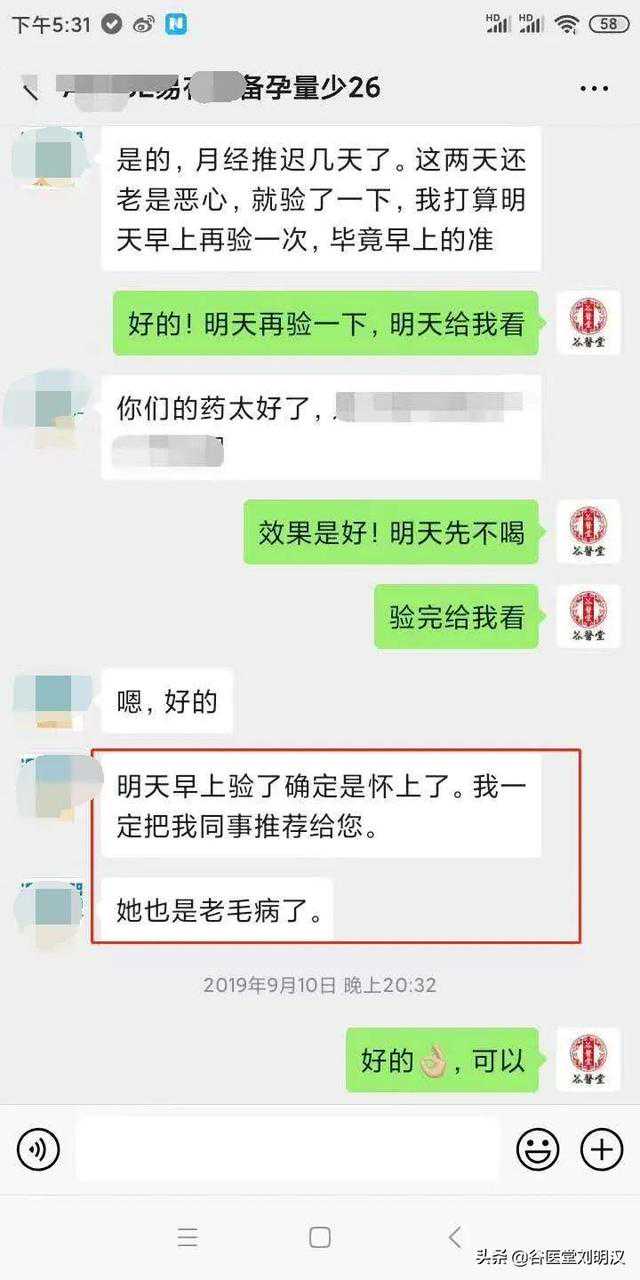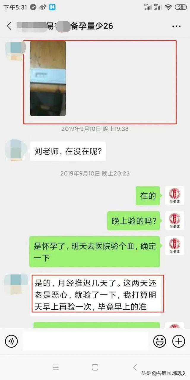 在坚持进行了2个多月的调理后,平时很准时的例假突然推迟了几天,而且那两天总有一种恶心感。觉察到异常的当晚,我就用验孕棒检测了一下,结果显示是两条红杠,也就是呈阳性!