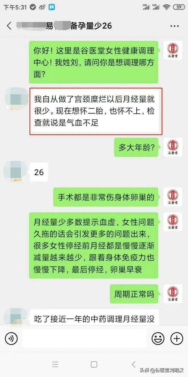 谷医堂的权威性和专业性让我产生了信任感,我联系上了他们的健康顾问,向她介绍了我的病情、病史。她判断我有气血亏虚、宫寒等问题,为我制定了充盈气血、调经养血、温暖子宫的综合调理方案。