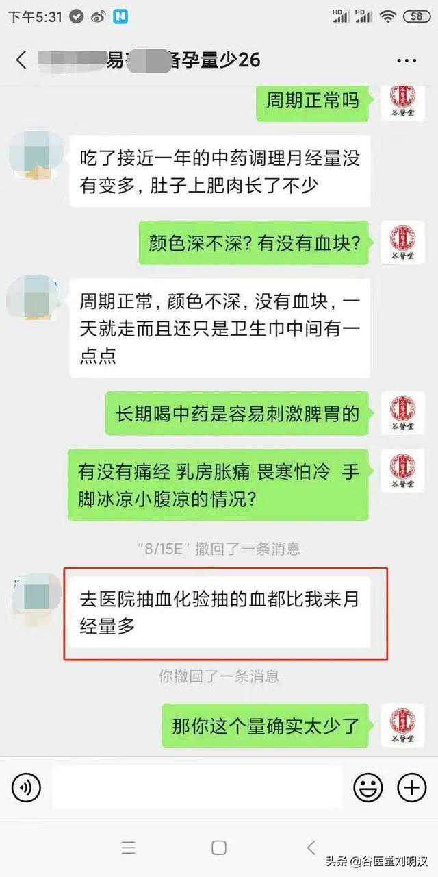 回想起来,都是因为一次手术损耗了身体的气血。之前因宫颈糜烂,选择了手术治疗。从那之后,就出现了月经量少、怕冷的情况。每次来例假,月经只来一天就走,而且只有卫生巾中间一点点。