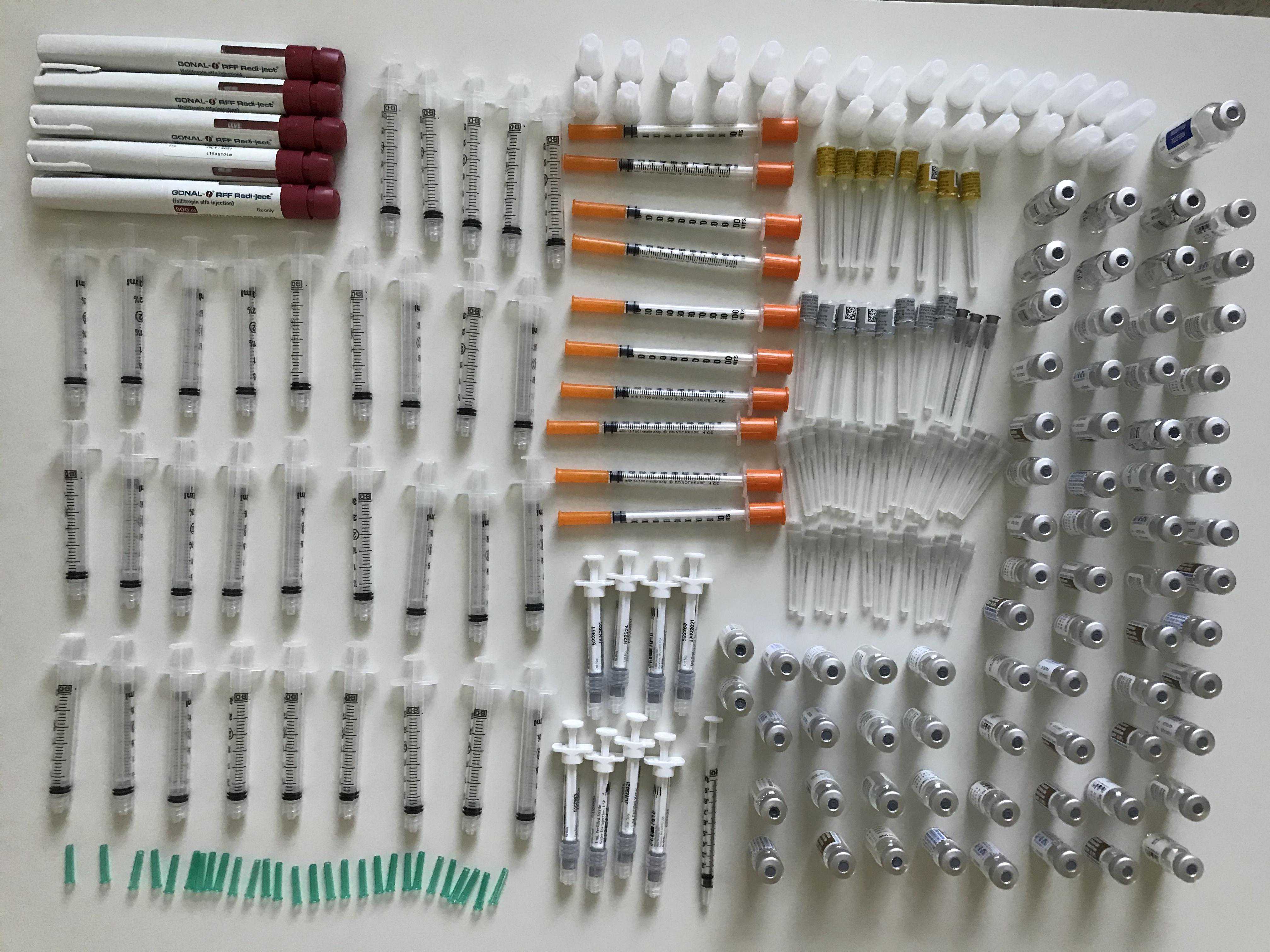 早上7:31,FSH150units,menopur75units晚上7:38,omnitrope27units晚上8:00,Lupron80units,
