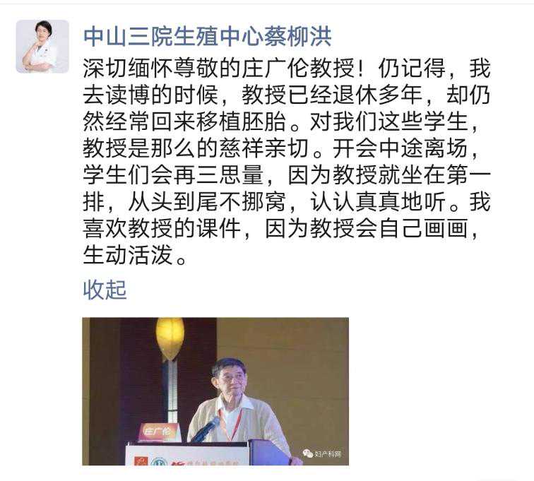 消息,“中国试管婴儿之父”、中山大学附属第一医院生殖中心教授、博士生导师庄广伦7月25日逝世,终年85岁。