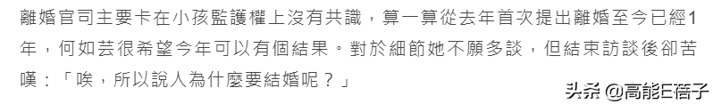 不久之后她还是接受了媒体采访,说离婚官司主要卡在小孩监护权上没有共识,她和儿子已经分离两个月没见面了。
