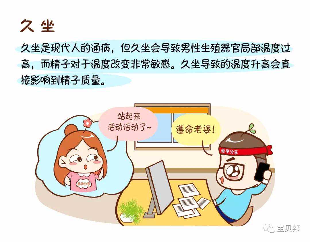 久坐是现代人的通病,但久坐会导致男性生殖器官局部温度过高,而精子对于温度改变非常敏感。久坐导致的温度升高会直接影响到精子质量。
