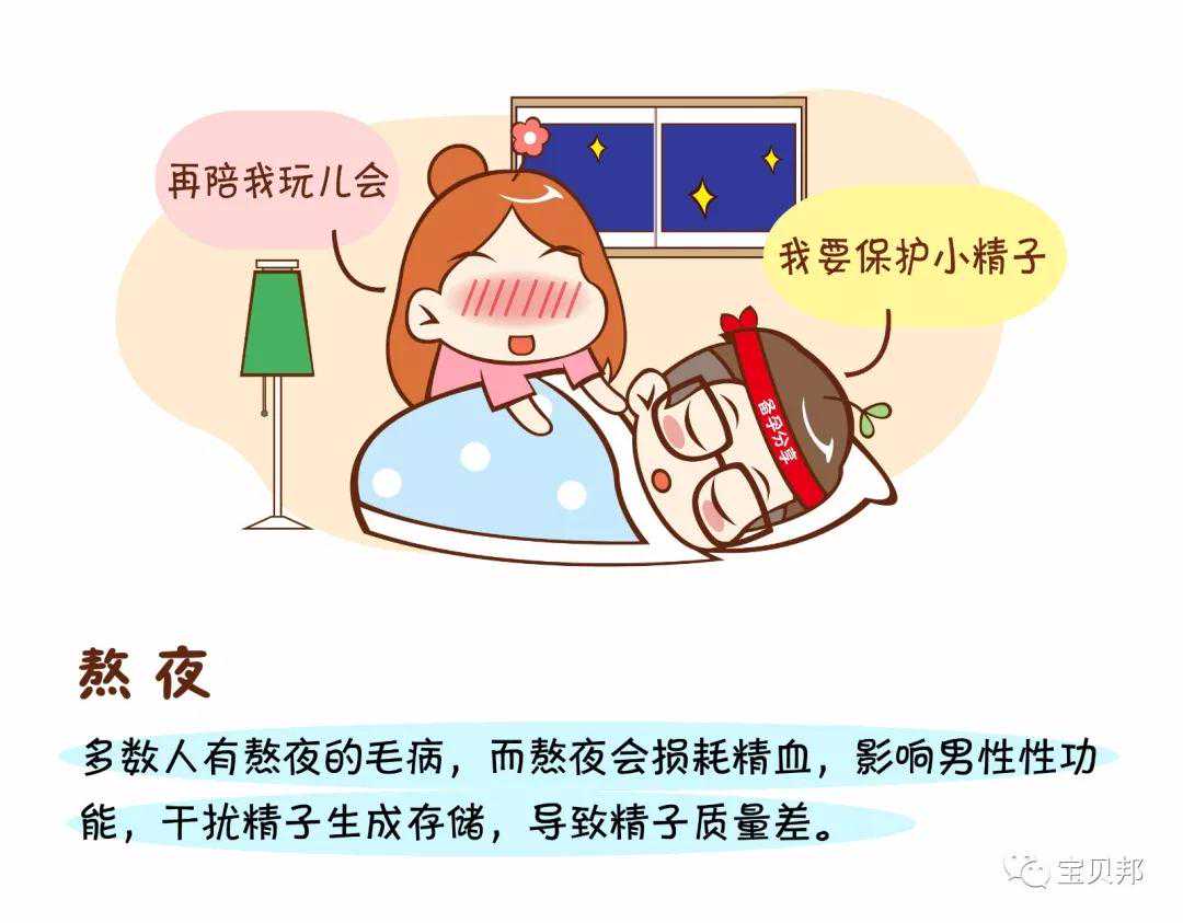 多数人有熬夜的毛病,而熬夜会损耗精血,影响男性性功能,干扰精子生成存储,导致精子质量差。