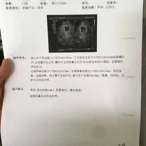 28天后一超,超声见到了胎芽、胎心,两周后的二超也通过。